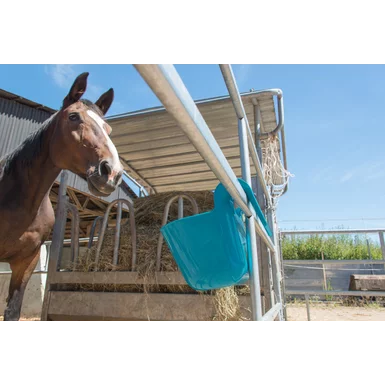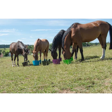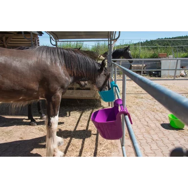 Przenośne karmidło zawieszane o pojemności 13,5 litra to praktyczne i uniwersalne rozwiązanie do codziennego podawania paszy w stajni, oborze oraz na wybiegach.