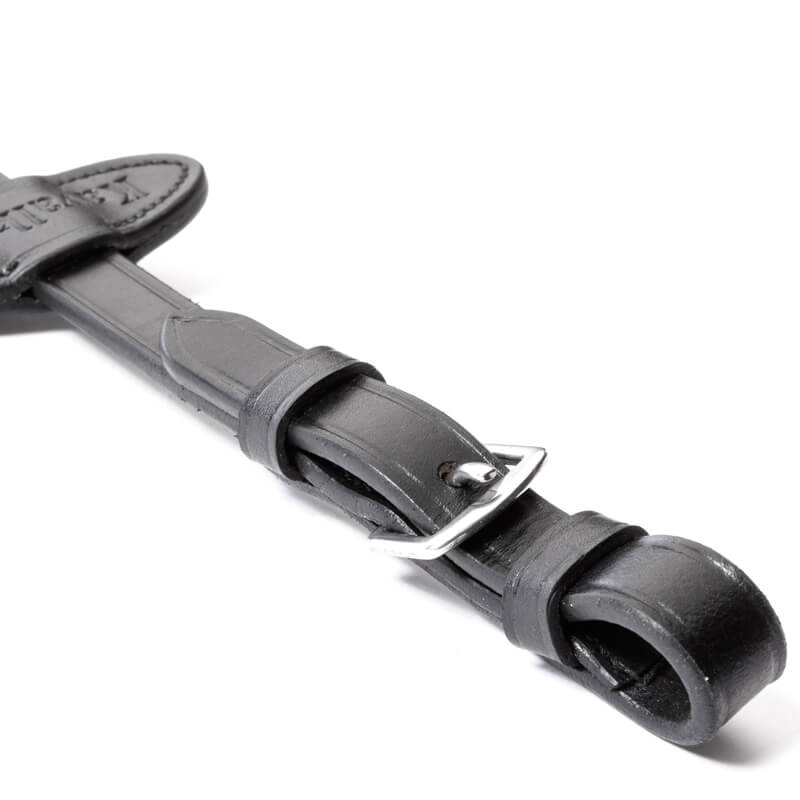 Wąska szerokość 16 mm zapewnia wygodny, pewny chwyt. Model bez stoperów sprawdzi się u jeźdźców preferujących gładkie wodze i swobodną pracę dłoni. Całość wykończona została skórzanymi zakończeniami oraz wyposażona w sprzączki i przesuwkę do wytoku.