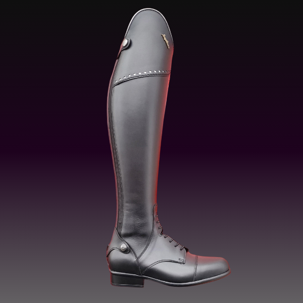 Model Asti wykonany jest z wysokiej jakości naturalnej skóry cielęcej, która idealnie dopasowuje się do nogi. Dzięki elastycznej wstawce umieszczonej przy tylnym zamku oraz elastycznej sznurówce w części podbicia, oficerki zapewniają indywidualne i komfortowe dopasowanie w trakcie jazdy.